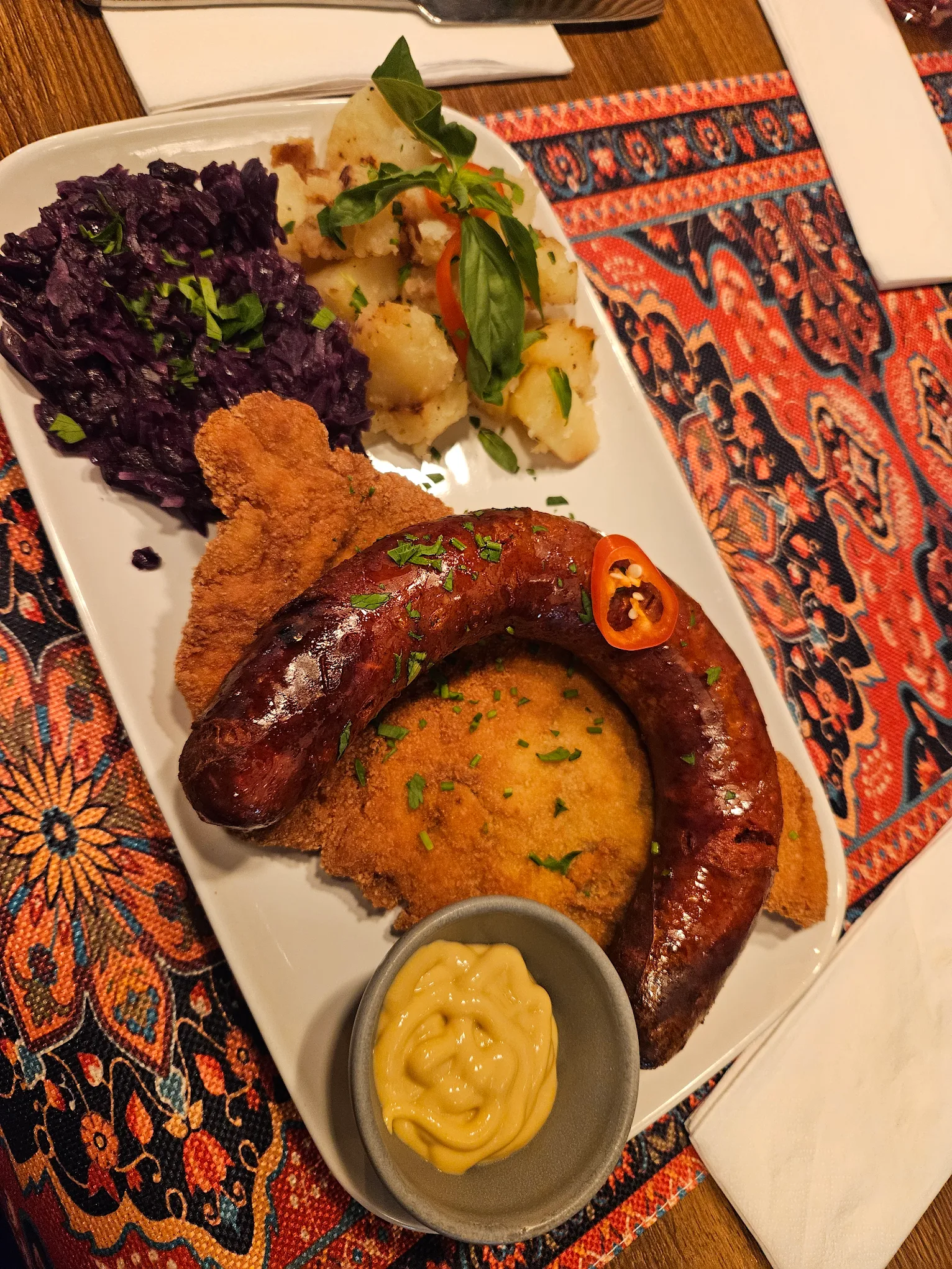 The food is incredibly tasty! I personally recommend the aubergine cream, goulash soup and wild mushroom stew. As for dessert, we tried the fanta cake and the papanasi, which were both amazing!